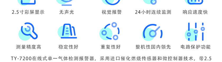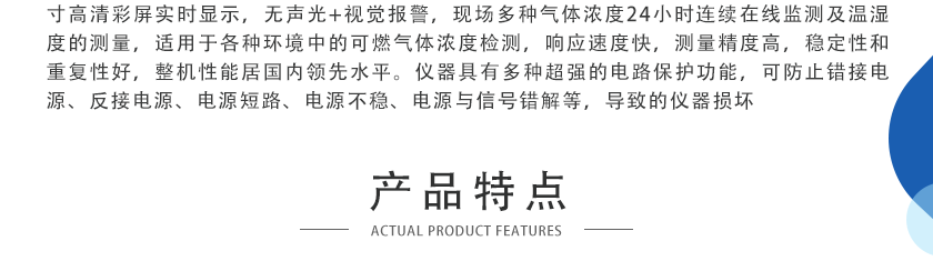 采用進(jìn)口催化燃燒傳感器和微控制器技術(shù),帶2.5寸高清彩屏實(shí)時(shí)顯示,帶聲光+視覺報(bào)警,現(xiàn)場多種氣體濃度 24 小時(shí)連續(xù)在線監(jiān)測及溫濕度的測量,適用于各種環(huán)境中的可燃?xì)怏w濃度檢測,響應(yīng)速度快,測量精度高,穩(wěn)定性和重復(fù)性好,整機(jī)性能居國內(nèi)領(lǐng)先水平。儀器具有多種超強(qiáng)的電路保護(hù)功能,可防止錯(cuò)接電源、反接電源、電源短路、電源不穩(wěn)、電源與信號(hào)錯(cuò)解等,導(dǎo)致的儀器損壞。