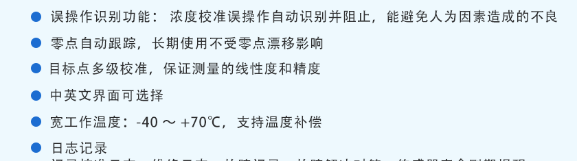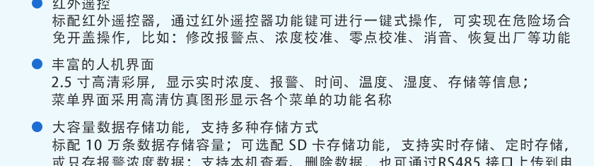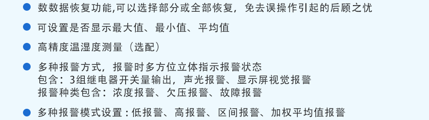CO(0.1ppm)、H2S(0.01ppm)、O2(0.01%Vol)、Ex(0.1%LEL),更高分辨率可訂制 |
