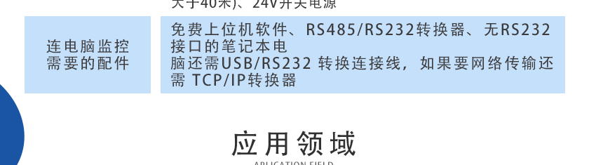 免費(fèi)上位機(jī)軟件、RS485/RS232轉(zhuǎn)換器、無RS232接口的筆記本電 腦還需USB/RS232 轉(zhuǎn)換連接線,如果要網(wǎng)絡(luò)傳輸還需 TCP/IP轉(zhuǎn)換器 |