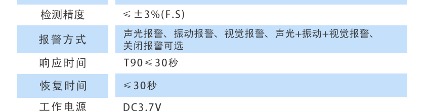 0~100%LEL、0~5%Vol、0~100%Vol可選,其他量程可訂制