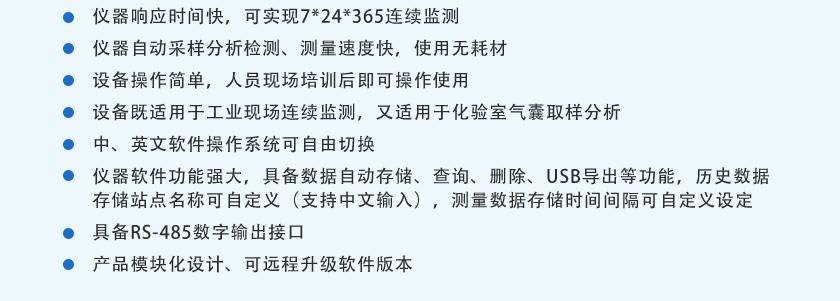 (7)儀器響應(yīng)時(shí)間快,可實(shí)現(xiàn)7*24*365連續(xù)監(jiān)測。