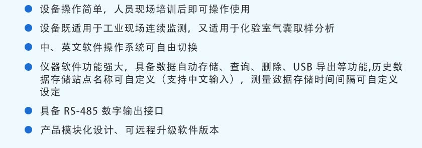 采用自主知識產(chǎn)權(quán)的NDIR非分光紅外技術(shù),主要用于測量氣體中的CO、CO2、CH4、C3H8、SO2、NO等氣體的體積濃度及熱值。全進(jìn)口傳感器、測量精度高、結(jié)構(gòu)簡單、維護(hù)方便,軟件功能強(qiáng)大,可拓展性強(qiáng)、現(xiàn)場實(shí)用性好,目前暢銷國內(nèi)外。