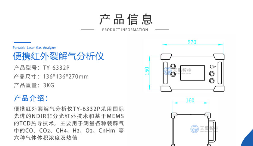 • 便攜紅外裂解氣分析儀 TY-6332P 采用國際先進的NDIR非分光紅外技術和基于MEMS的TCD熱導技術,主要用于測量各種裂解氣中的CO、CO2、CH4、H2、O2、CnHm?等六種氣體體積濃度及熱值。